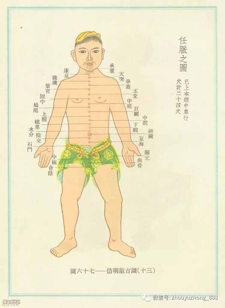 任脉之别络:从鸠尾(尾翳)穴处分出,自胸骨剑下行,散布于腹部。