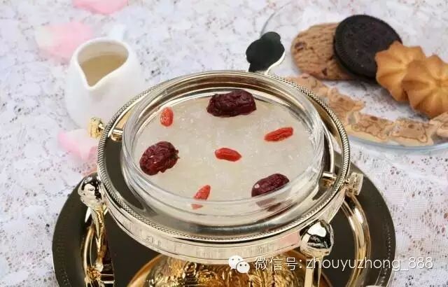 — 桂花冰糖炖燕窝冰糖炖燕窝最后2分钟加入桂花。只需要少量的桂花即可,因桂花带有苦涩味。可以止咳,润肺,缓解精神压力,帮助睡眠。